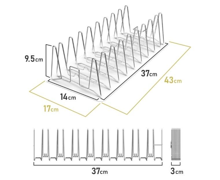 ●サブ水切りラックとして、皿 / コップ / まな板 / 鍋蓋 / ペットボトルなどしっかり自立するので様々なものを乾かすことができます。