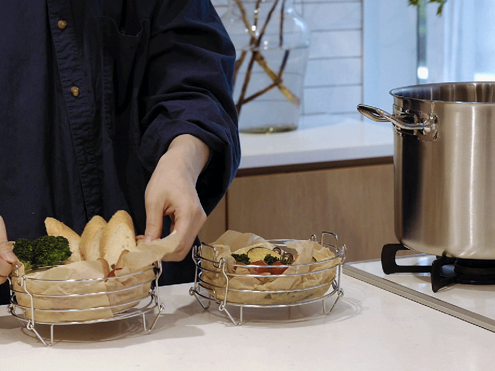 ●深鍋には、2段重ねてもOK。時間と手間が一気に短縮できます。