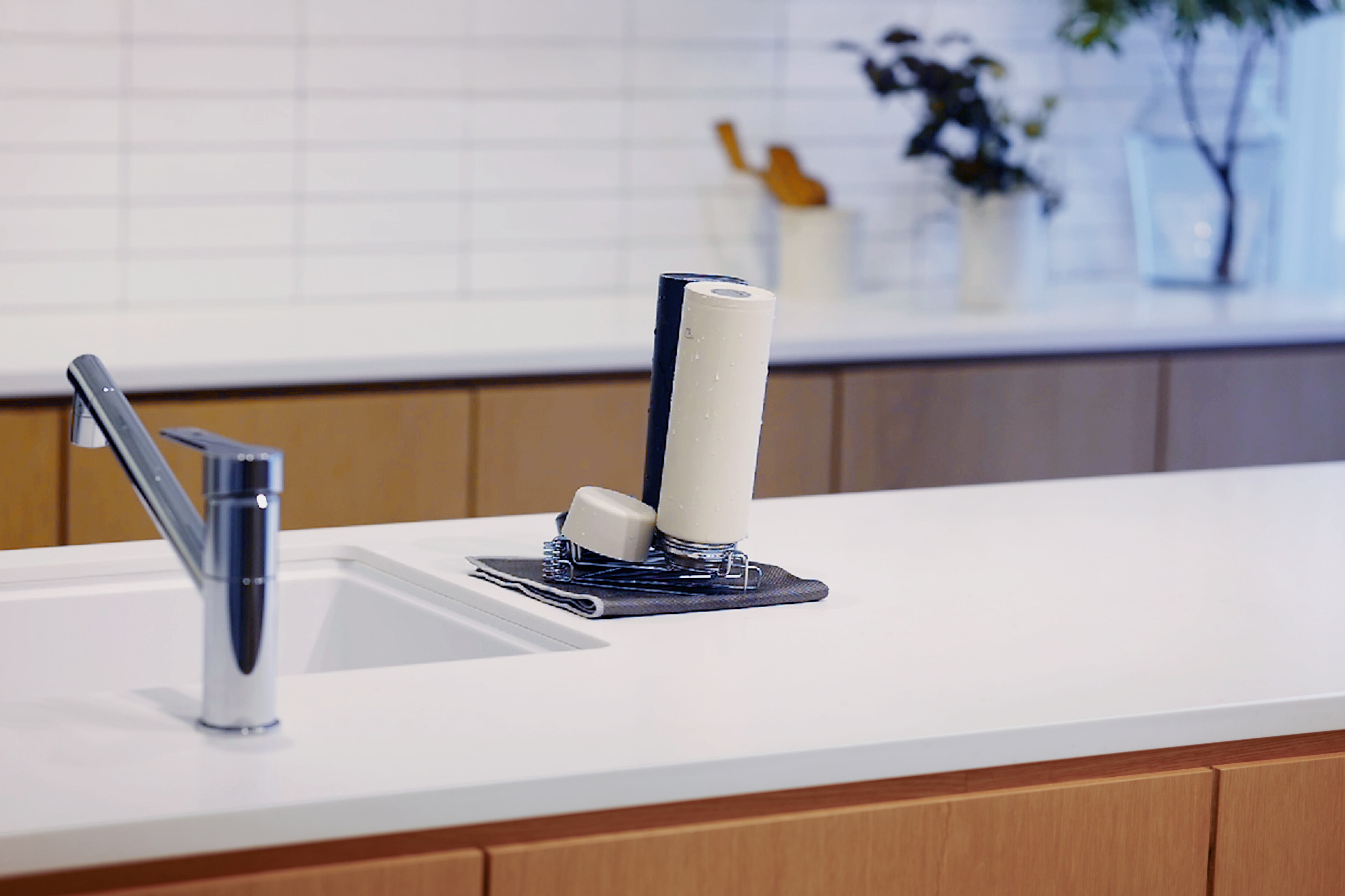 職場や学校に毎日持ち出す水筒は、食洗機不可のものが多く、手洗いしたとしても乾かす場所がなく困りもの。そんな気づきから、高さのあるボトルやマグカップを突起2 点でしっかり支え、省スペースで水切りできるボトルスタンドができました。